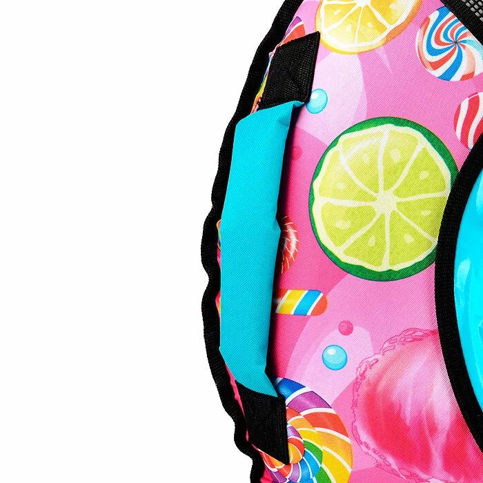 Надувные санки Ватрушка - это легкое и надежное  приспособление для зимних детских развлечений. Санки представляет собой оболочку из ткани ПВХ, которая устойчива к истиранию и обеспечивает отличное скольжение по снегу. По кругу санки окантованы силовой стропой, которая используется в рюкзаках. Накачивать следует до равномерного распределения чехла «Ватрушки» по камере с легким «натягом».
