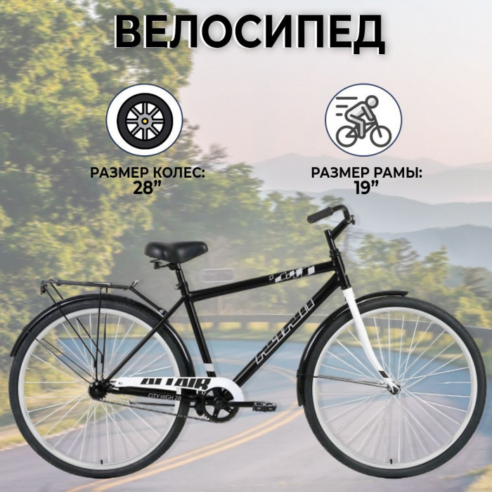 Altair City 28 low — городской прогулочный велосипед с заниженной рамой. Велосипед собран на стальной раме, которая обладает отличной жёсткостью и долговечностью. Установленная жёсткая вилка отличается длительным эксплуатационным периодом и надёжностью. Руль настраивается по высоте и углу наклона. Подседельный штырь с седлом регулируются по высоте. На велосипеде установлена защита от цепи, которая не даст элементам одежды попасть на цепь или зажаться звездой. Установленные полноразмерные крылья максимально обеспечивают защиту от грязи. Задний стационарный багажник позволяет перевозить вещи. Велосипед односкоростной. Тормоза ножные, педальные