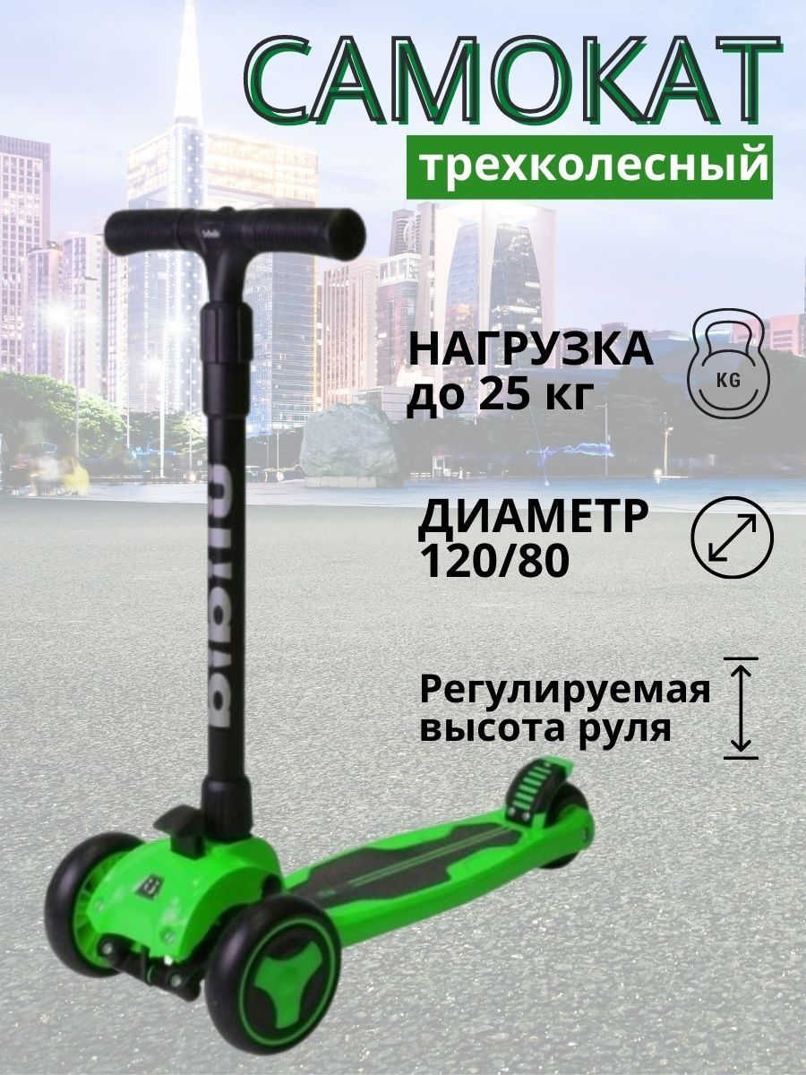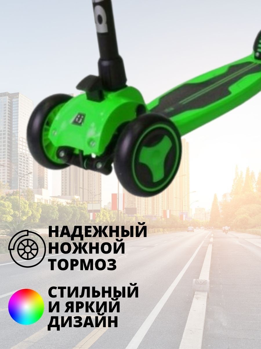 Трехколесный самокат со складным механизмом и музыкой.