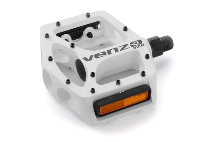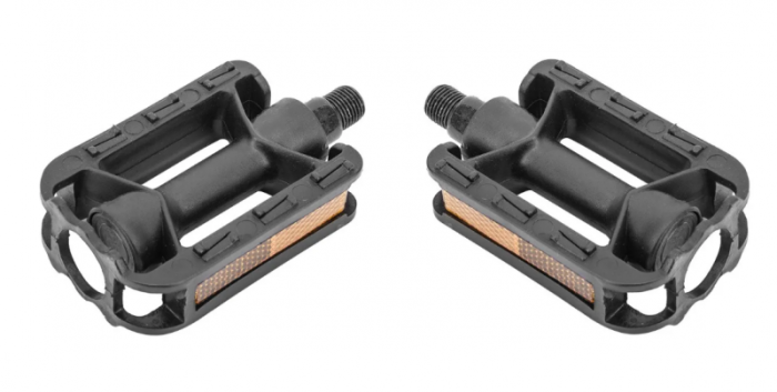 Педали BMX пластиковые. Широкие c шарикоподшипниками и отражателями. Ось - высокопрочный хром-молибденовый сплав.