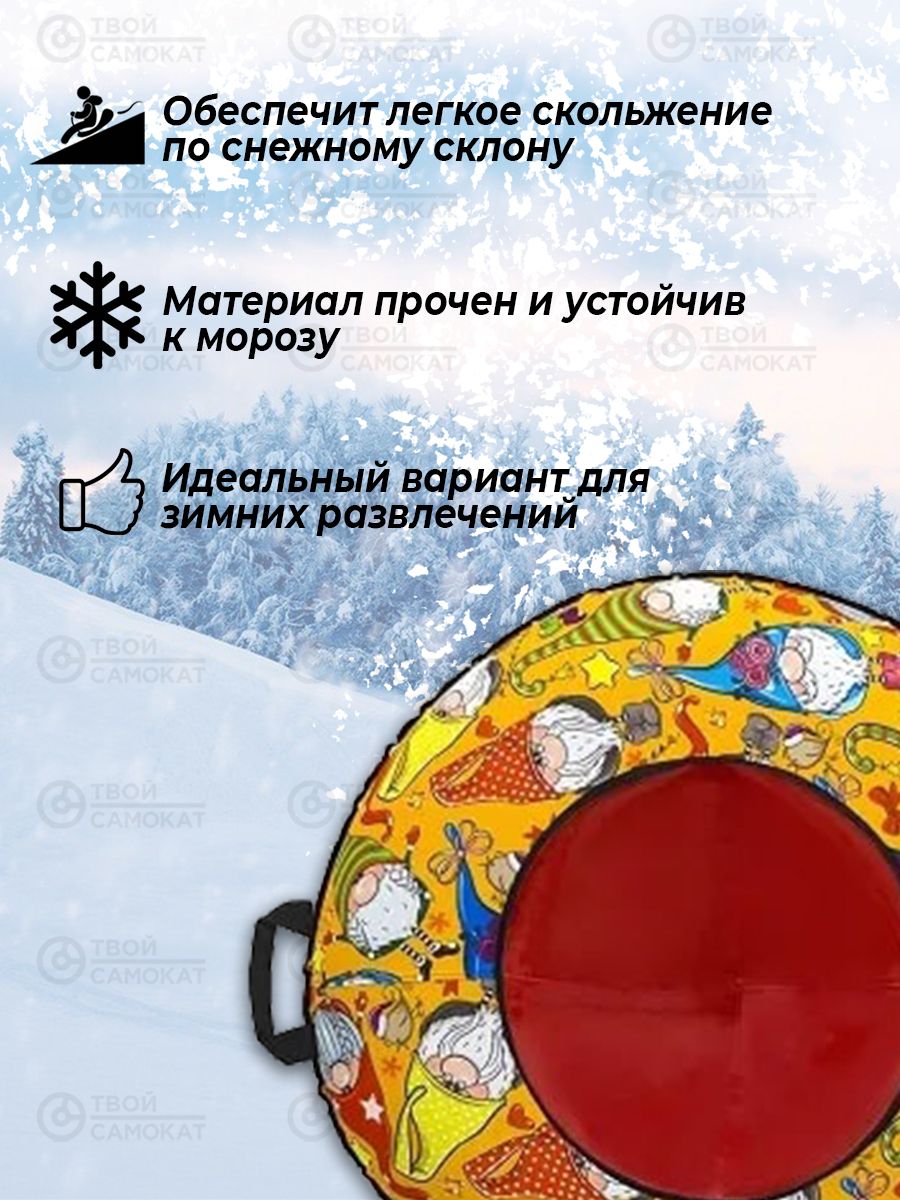 Надувные санки подарят ребенку незабываемые впечатления и эмоции от катания на снежной и ледяной горке. Ребенок обязательно полюбит зимний отдых. Благодаря яркой расцветке, неординарному дизайну, такой снегокат - надувное колесо обязательно понравится малышу. Ватрушка обладает особой конструкцией и обеспечивает ребенку максимальную безопасность во время активного отдыха. Подарите ребенку удовольствие от полета по белоснежному снегу. По кругу санки окантованы силовой стропой, которая используется в рюкзаках. Буксировочный ремень. Устойчивый к морозам до -28°С материал. Санки из ткани ПВХ (устойчива к истиранию).