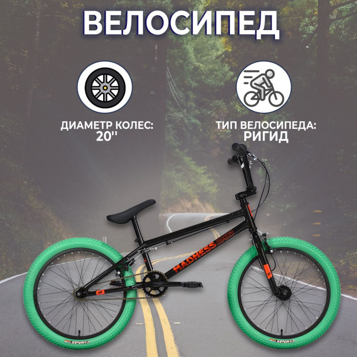 Экстремальный велосипед BMX без переключения передач. Технические особенности: стальная рама Hi-Ten, жесткая стальная вилка, двойные алюминиевые обода Stars Circle Double Wall, надежные ободные тормоза клещевого типа Radius U936DR U-Brake. Подходит для экстремального катания в городских условиях или в специальных парках. Диаметр колес - 20 дюймов. Вес - 12,3 кг.