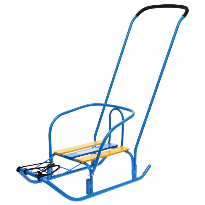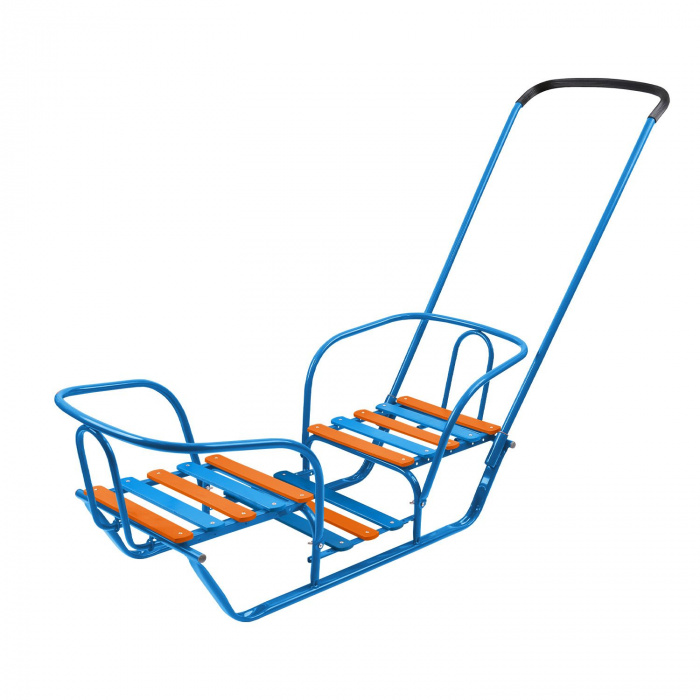 Металлические санки для катания и перевозки детей. Компактные в сложенном виде. <br/><br/>Габаритные размеры: Вес нетто, кг 7,0<br/><br/>Высота до сиденья, мм 180<br/><br/>Размер сиденья (ДхШ), мм 460х290<br/><br/>Размер изделия в сложенном виде (ДхШхВ), мм 920х440х200<br/><br/>Размер изделия в разл. виде (Д без ручки х Ш по спинке х В по спинке), мм 1200х440х940/1010<br/><br/>Преимущества:Металлический каркас с антикоррозийным покрытием<br/><br/>Механизм выдвижных колёсных шасси<br/><br/>Плоские полозья<br/><br/>Удлиненное сиденье - поперечная рейка из окрашенного древесного материала<br/><br/>Складная ручка-толкатель<br/><br/>Складная спинка<br/><br/>Ступенчатая подножка<br/><br/>Ремень безопасности<br/><br/>Колеса на полозьях<br/><br/>Грузоподъемность до 25 кг<br/><br/>В индивидуальной упаковке