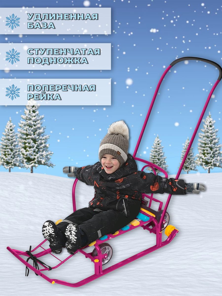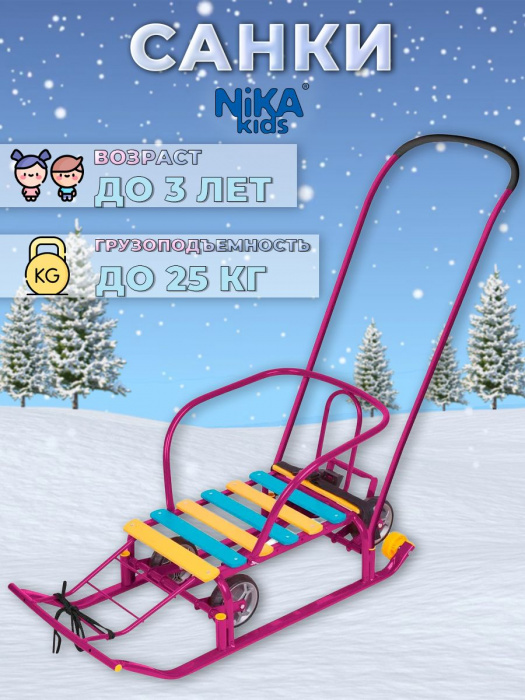 Санки детские NIKKI (ВЫДВИЖНЫЕ КОЛЕСА) (СКЛАДНАЯ СПИНКА, СКЛАДНАЯ РУЧКА)