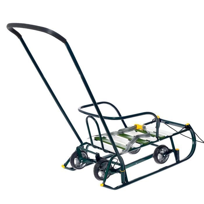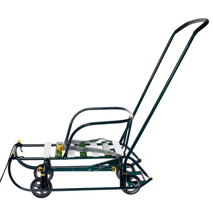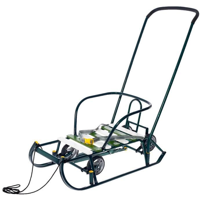 Санки детские складные Nikki 3, с колёсами и ручкой, цвет зелёный